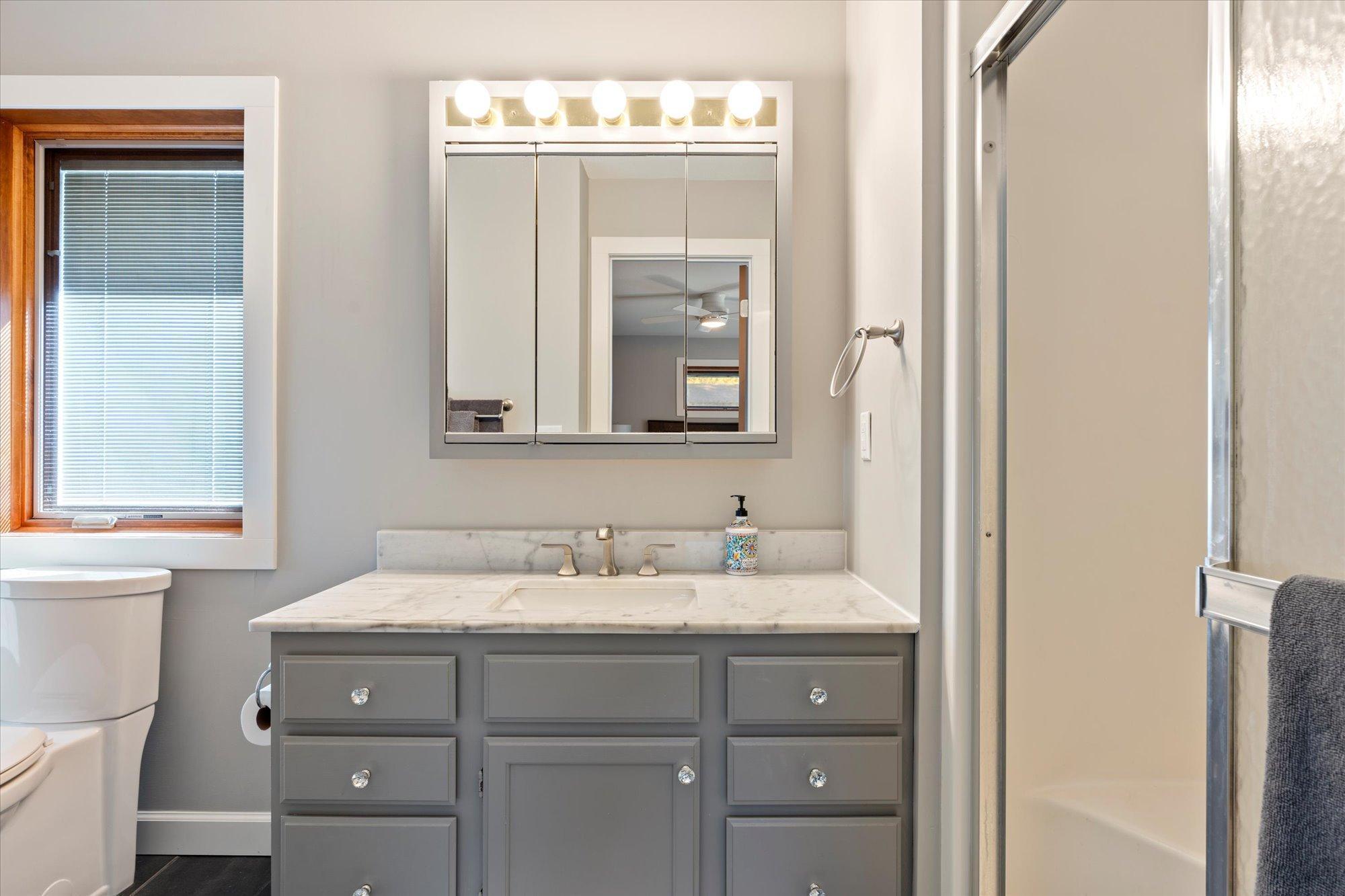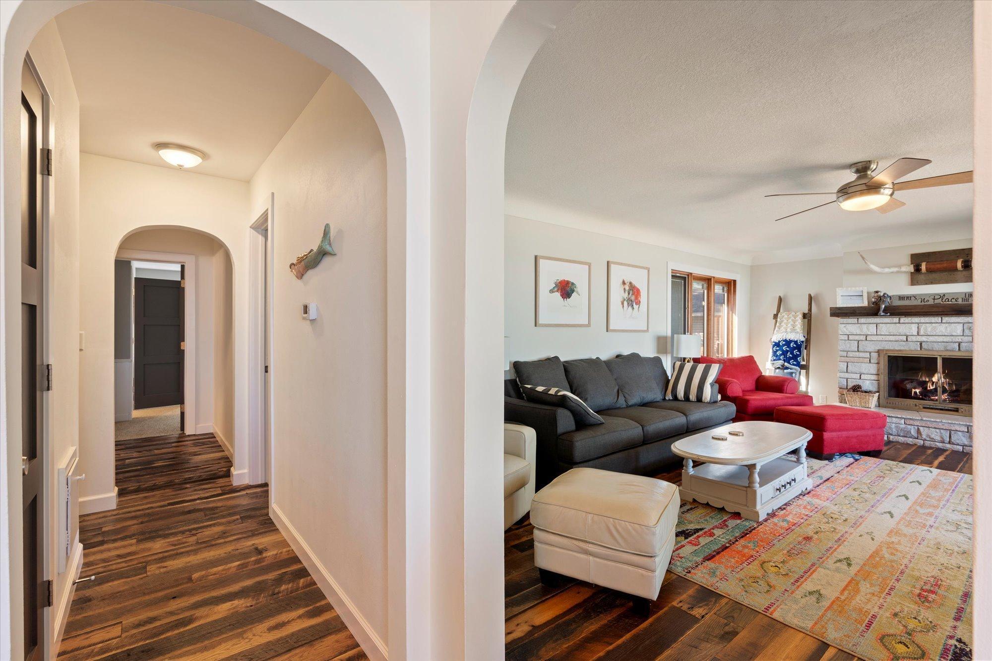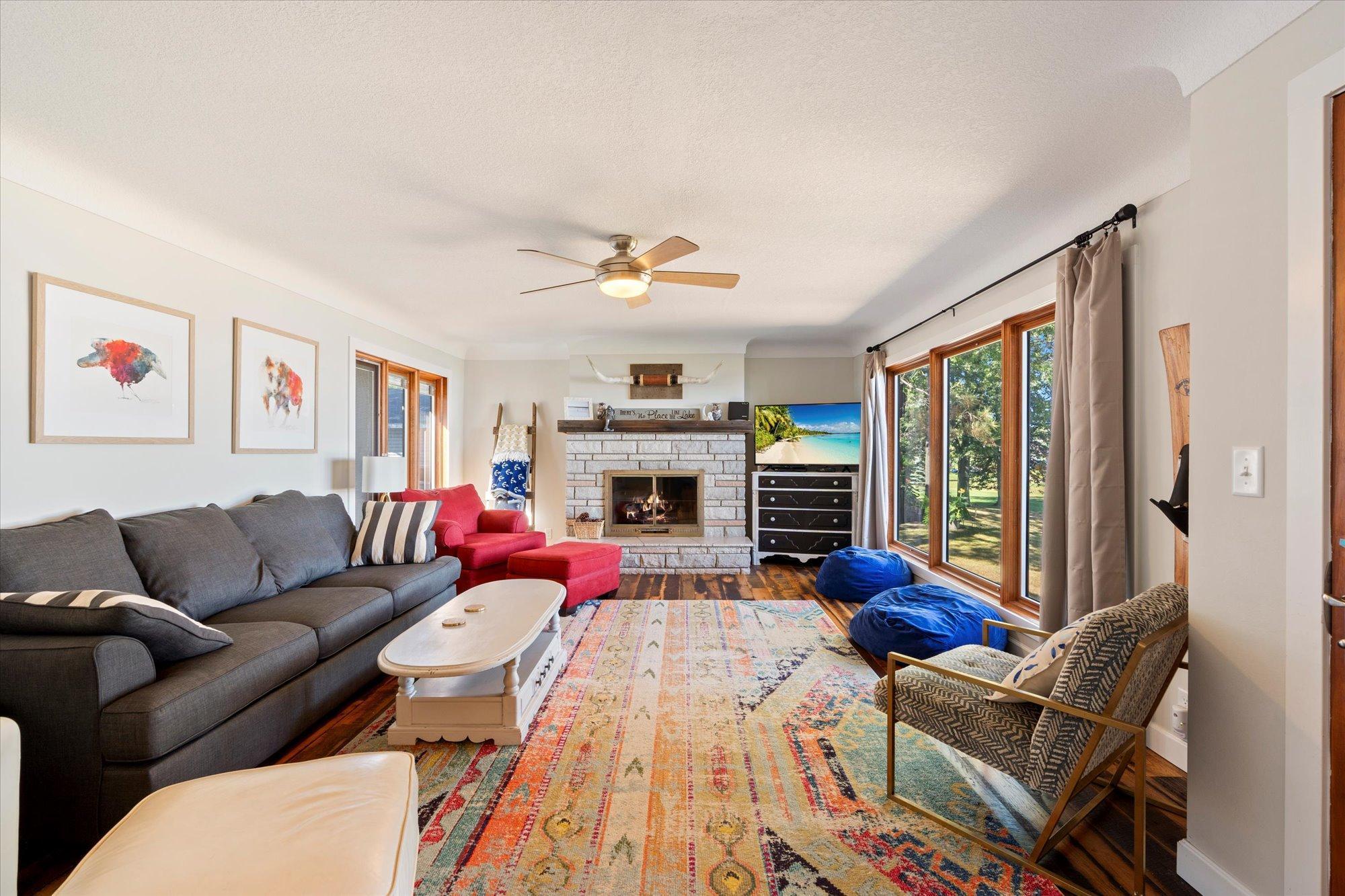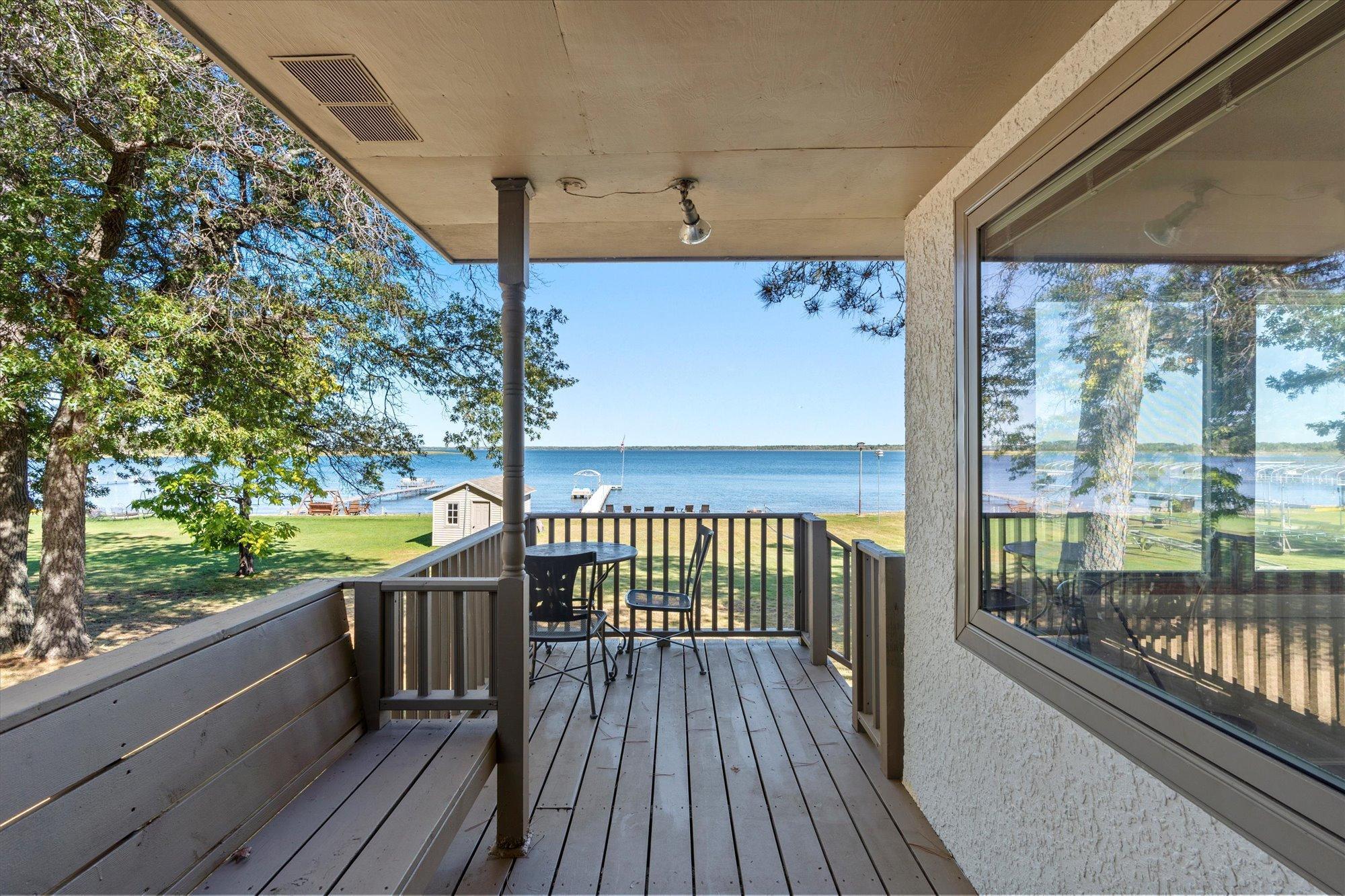 Inside, you'll find a thoughtfully renovated interior designed for comfort and style. The main level showcases panoramic lake views from nearly every room, including the dining area and a newer kitchen, creating a perfect setting for entertaining or enjoying a peaceful meal. The home's one-level layout includes a private primary suite with its own bathroom, while two additional bedrooms share a beautifully updated bath. The breezeway adds extra charm and functional space, making for easy indoor-outdoor living. The basement could be easily finished for more space, should one desire!