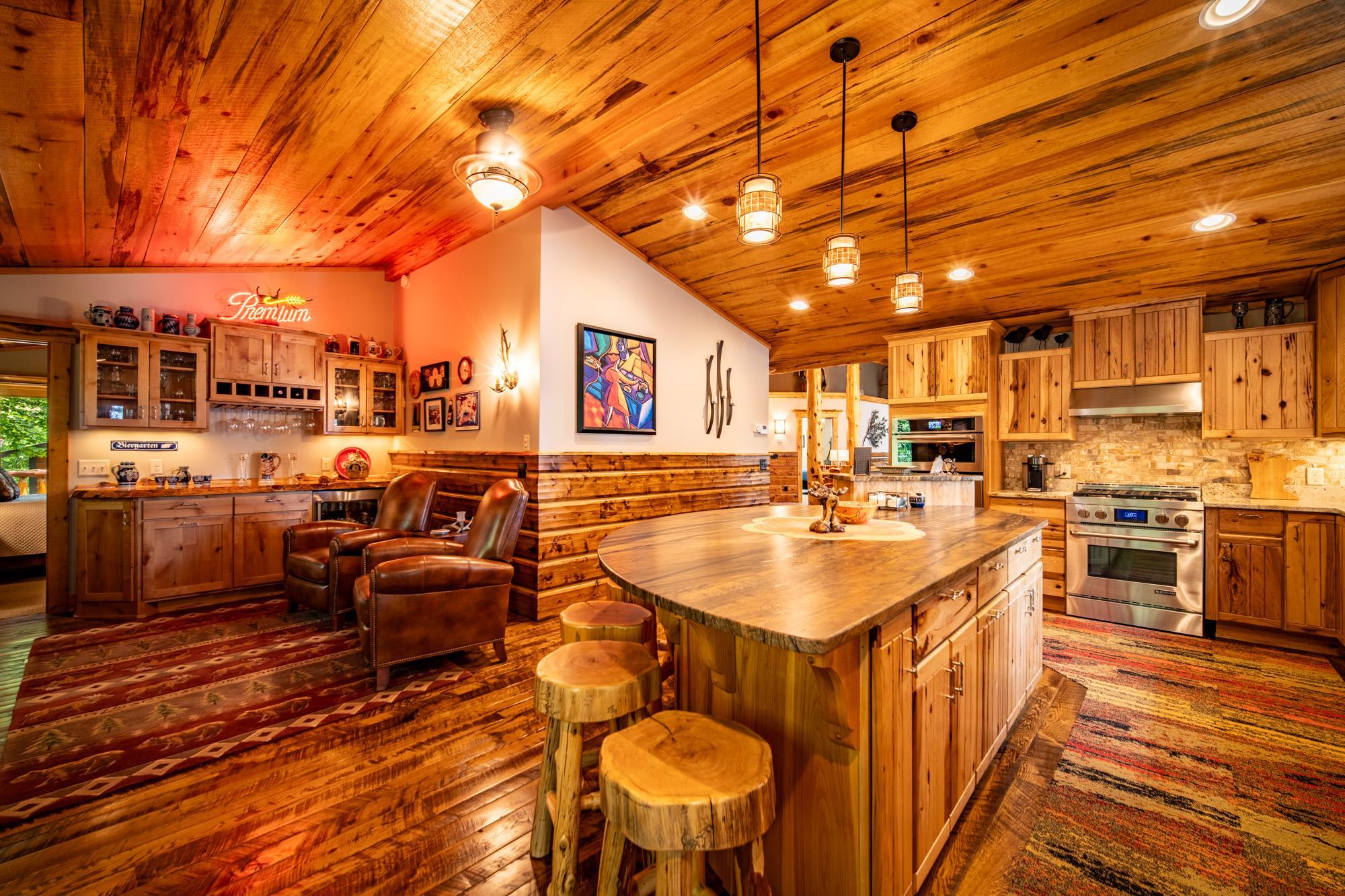 Nestled among towering pines on scenic and crystal-clear Big Bass Lake, this property has it all. This stunning home had a recent large addition and full-remodel and comes mostly furnished. The grand entrance opens into a spacious great room with spectacular views, distressed oak floors, vaulted wood ceilings, log accents and stone gas FP. The bright, airy custom kitchen has a circular breakfast bar that sits 6, a natural stone wood-burning FP, cozy sitting nook, built-in bar, entrance onto a screen porch and large lakeside deck. There is a main floor owner's suite, second bedroom, full bath and laundry. The lower level has a family room, bedrooms, office, 3/4 bath, shop and plenty of storage. The detached garage also has a sauna, 3/4 bath and screened porch. The second 28' X 30' garage has plenty of room for storing boats and toys. The grounds are beautifully landscaped with a garden shed and wood shed and the 150' of excellent shoreline and 1.66 acres gives you excellent privacy.