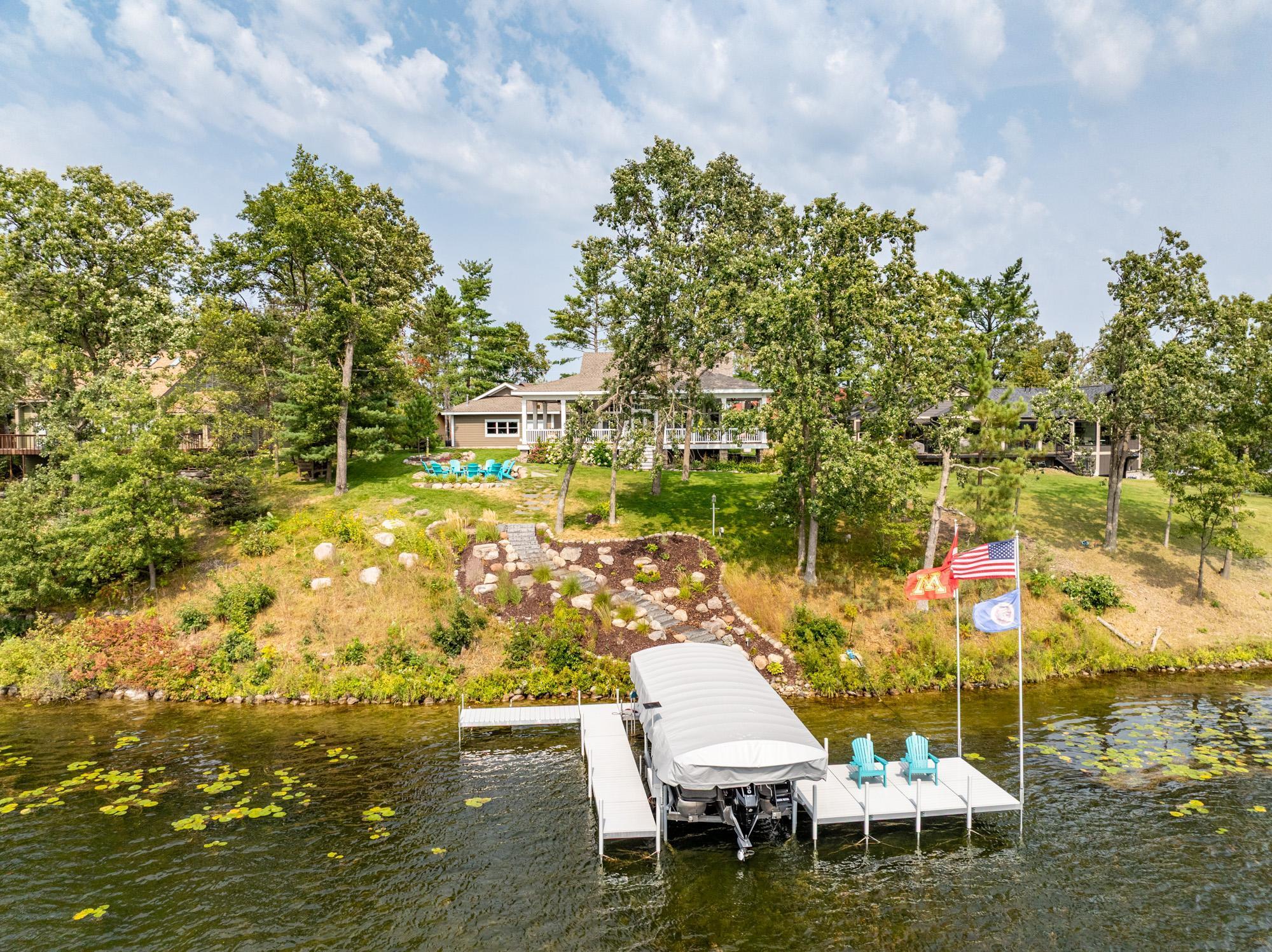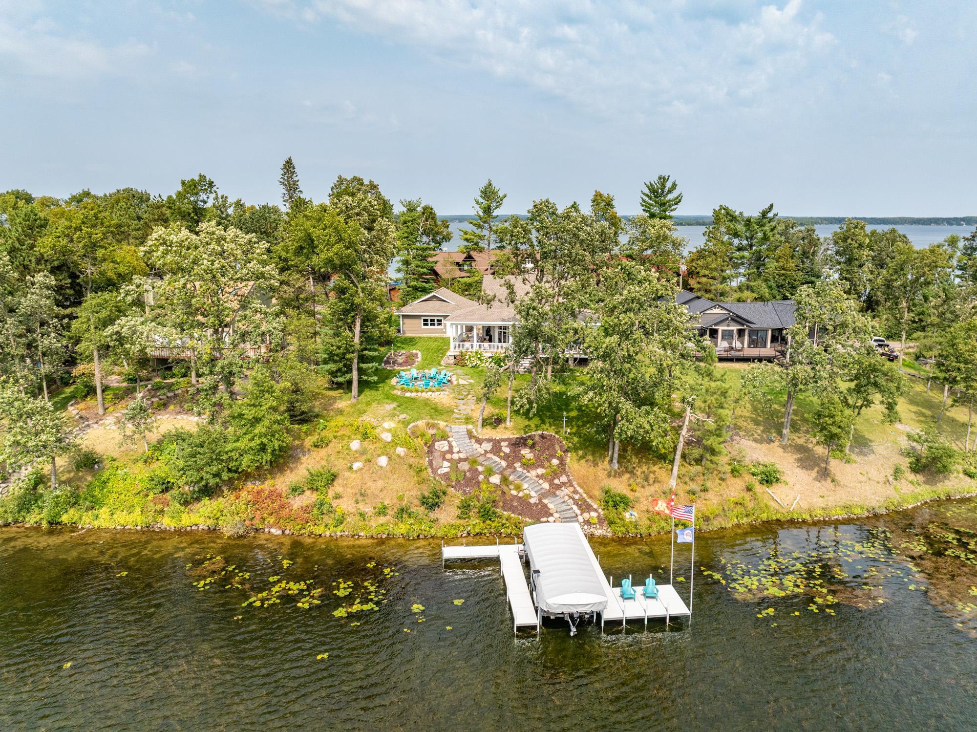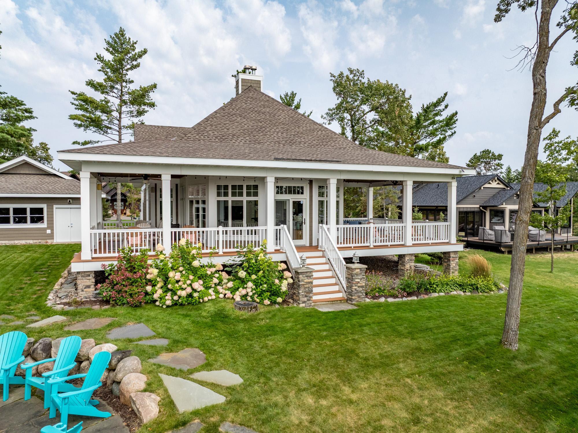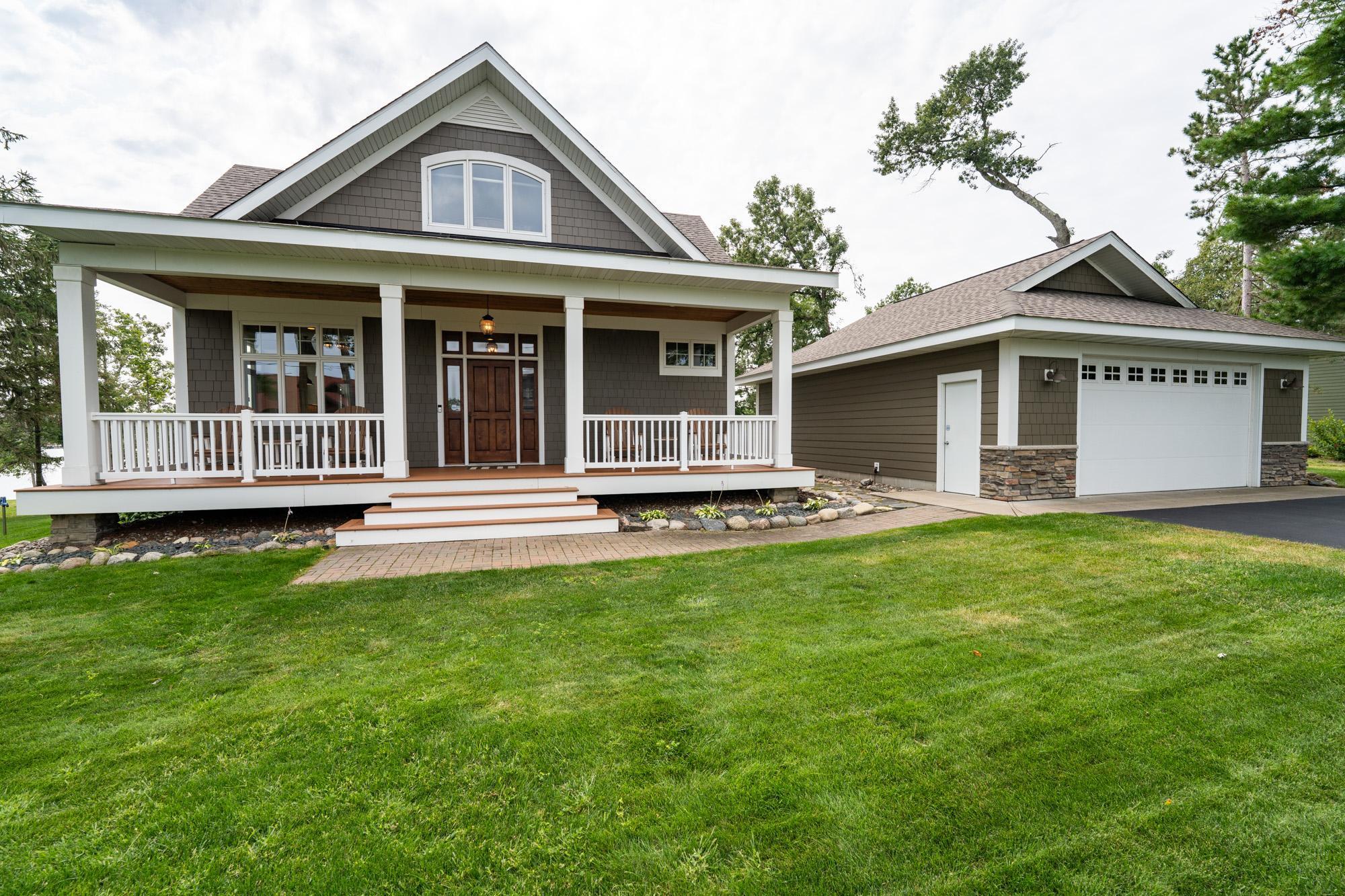 As the morning sun rises, casting a golden shimmer across the tranquil waters of Clamshell Lake, you can already feel the serenity this craftsman-style bungalow brings to lake living. Perched at the end of the renowned Ruttger Road, this 4-bedroom, 4-bath home offers a lifestyle of relaxation and connection with the lake. Enjoy 100 feet of sandy lake frontage, inviting you to indulge in the best of lakeside leisure. This well-appointed home features custom built-in cabinetry, plus Alder woodwork and black walnut hardwood floors throughout. The oversized kitchen is stunning, with granite countertops, cabinets with leaded glass doors, and top-of-the-line stainless steel appliances. The lakeside great room has a gas fireplace, French doors to the lakeside porch, and offers stunning lake views. The formal dining room is situated between the kitchen and great room, offering more scenic views. The main floor primary bedroom suite has a custom closet with storage above, a full bathroom with custom cabinetry, a Kohler vintage tub, a walk-in tiled shower, a stacked washer/dryer, and a heated tile floor. The upper level features a bedroom ensuite with a sunroom. The finished lower level includes Wirsbo in-floor heat, a family room with a floor-to-ceiling stone fireplace, two bedrooms, a bathroom, and a maintenance/exercise room with the laundry area. The property also includes a spacious detached, insulated, and heated 2-stall car garage for storage flexibility, as well as a maintenance-free exterior with James Hardy siding, aluminum soffits, and maintenance-free decking and rails, allowing more time to relish the lake life offered by the Whitefish Chain. Relax on the lakeside wrap-around porches and take in the warm summer breeze and stunning lake views. Engage in boating, fishing, swimming, and a multitude of lakefront activities available on the Whitefish Chain. Situated in Ideal Township, the home affords proximity to Crosslake and Pequot Lakes, offering great restaurants, shops, and premier golf courses. Experience the dream retreat you've been longing for on the famous Whitefish Chain!
