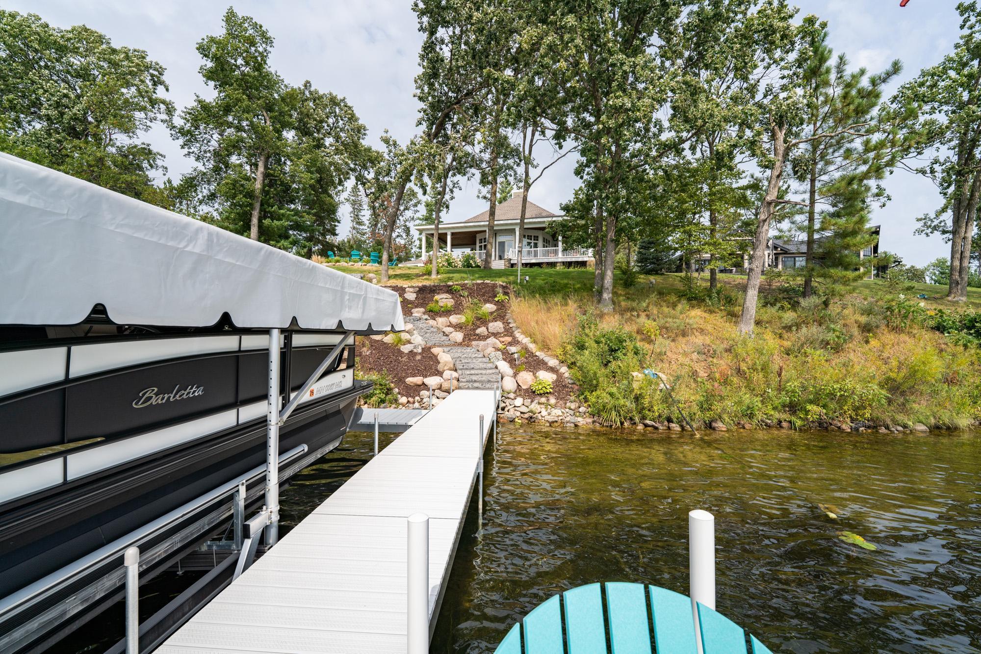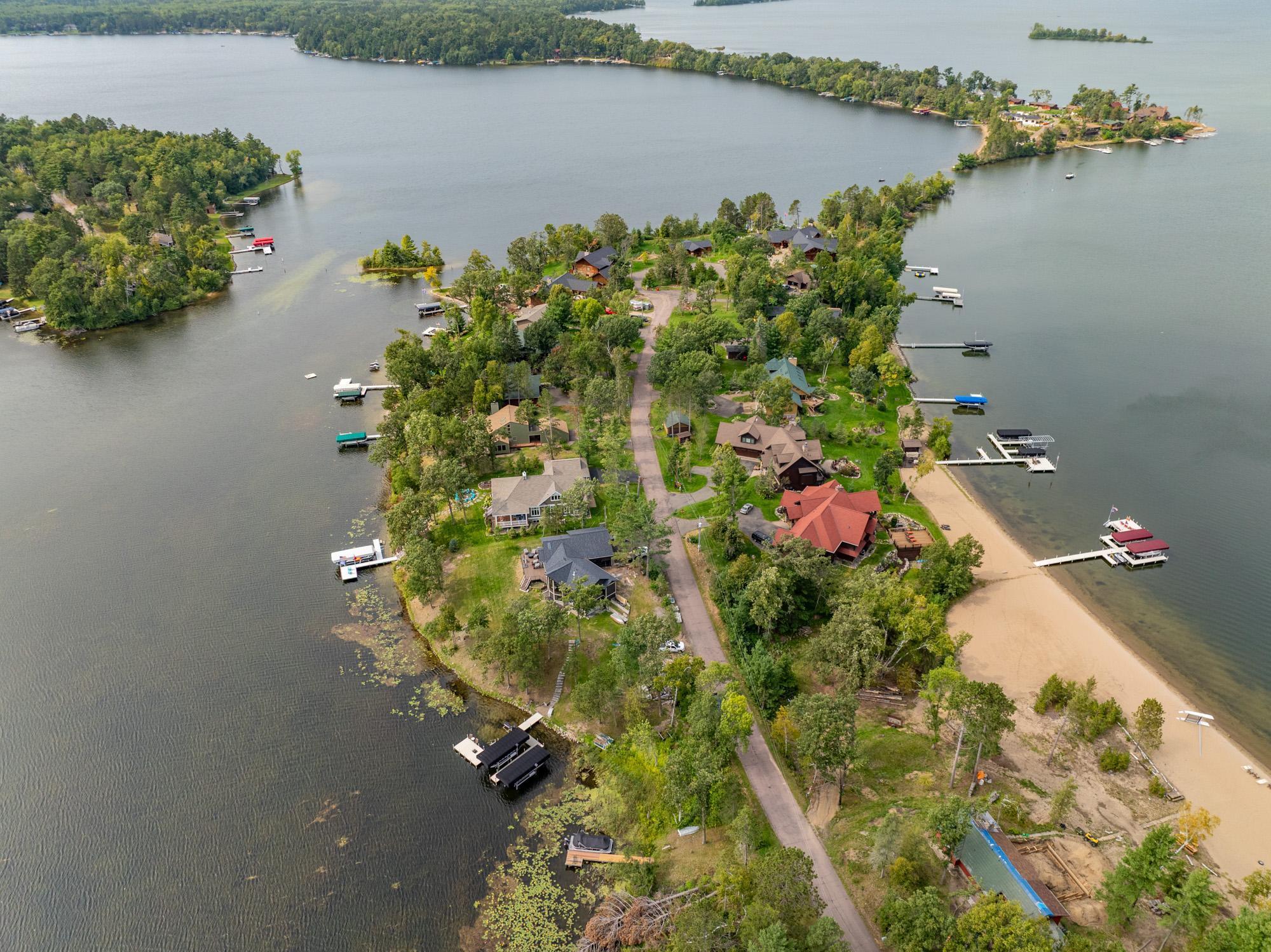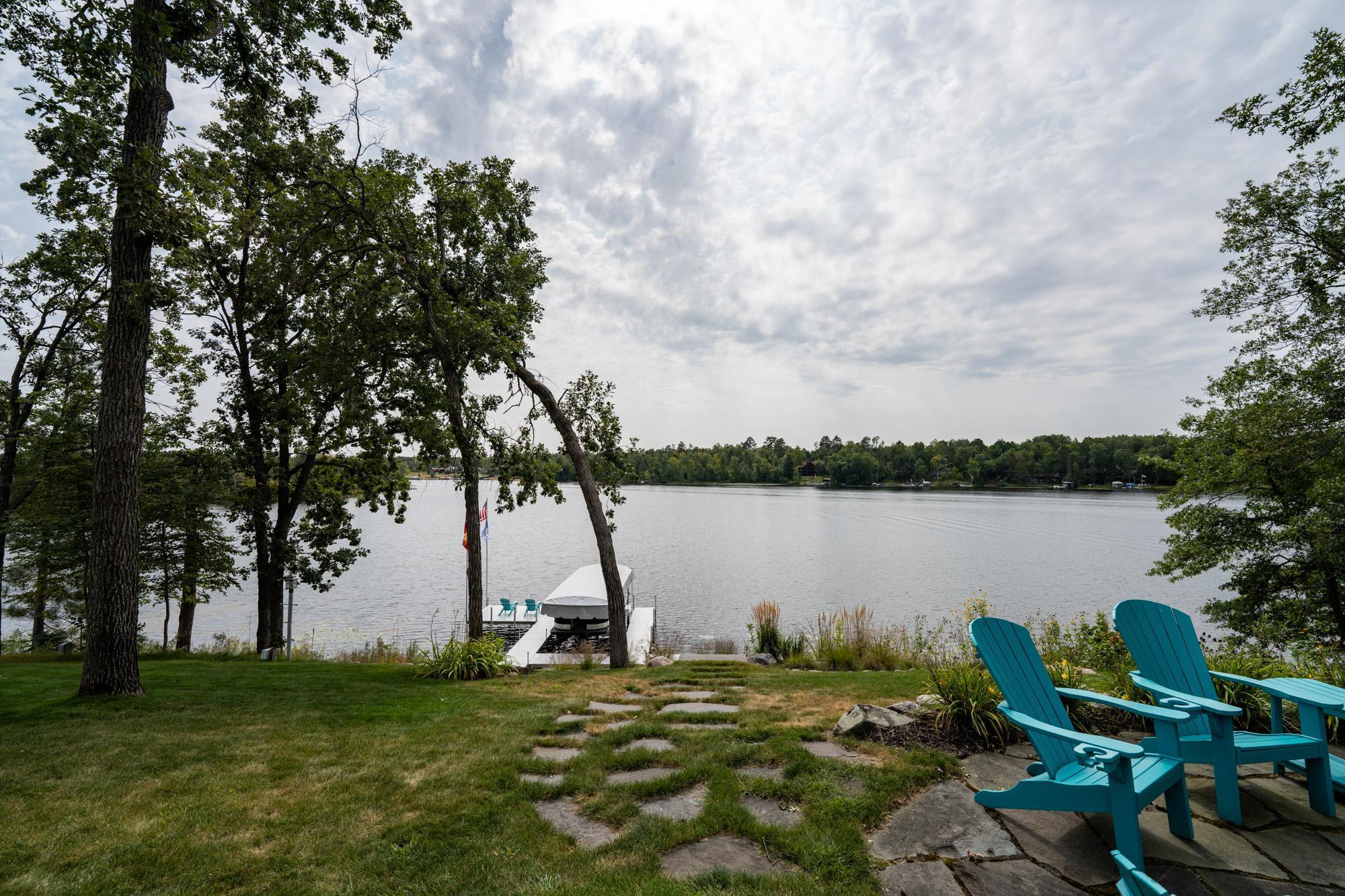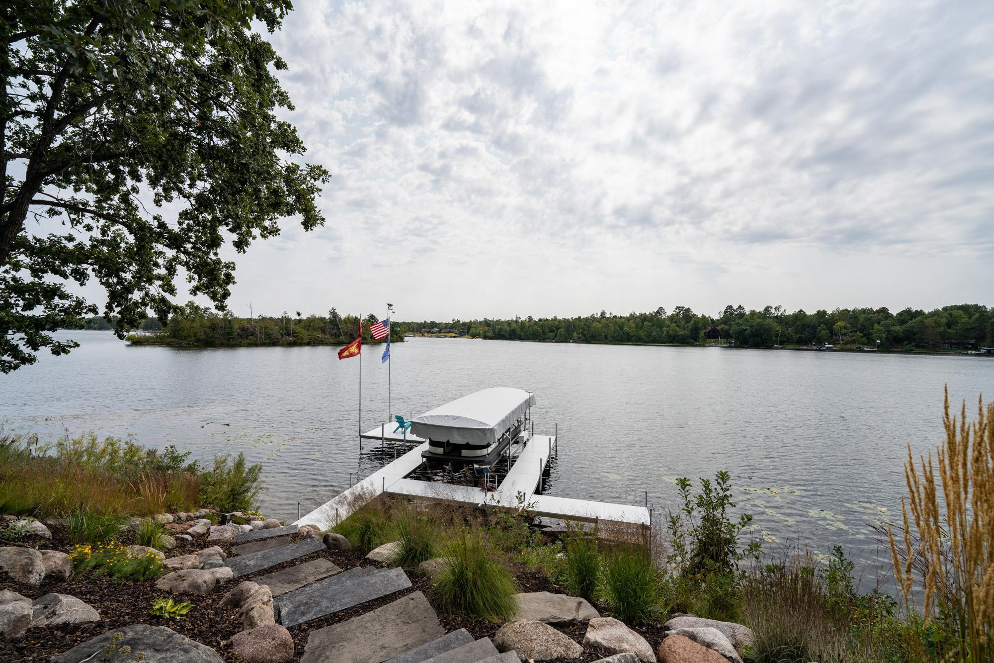 As the morning sun rises, casting a golden shimmer across the tranquil waters of Clamshell Lake, you can already feel the serenity this craftsman-style bungalow brings to lake living. Perched at the end of the renowned Ruttger Road, this 4-bedroom, 4-bath home offers a lifestyle of relaxation and connection with the lake. Enjoy 100 feet of sandy lake frontage, inviting you to indulge in the best of lakeside leisure. This well-appointed home features custom built-in cabinetry, plus Alder woodwork and black walnut hardwood floors throughout. The oversized kitchen is stunning, with granite countertops, cabinets with leaded glass doors, and top-of-the-line stainless steel appliances. The lakeside great room has a gas fireplace, French doors to the lakeside porch, and offers stunning lake views. The formal dining room is situated between the kitchen and great room, offering more scenic views. The main floor primary bedroom suite has a custom closet with storage above, a full bathroom with custom cabinetry, a Kohler vintage tub, a walk-in tiled shower, a stacked washer/dryer, and a heated tile floor. The upper level features a bedroom ensuite with a sunroom. The finished lower level includes Wirsbo in-floor heat, a family room with a floor-to-ceiling stone fireplace, two bedrooms, a bathroom, and a maintenance/exercise room with the laundry area. The property also includes a spacious detached, insulated, and heated 2-stall car garage for storage flexibility, as well as a maintenance-free exterior with James Hardy siding, aluminum soffits, and maintenance-free decking and rails, allowing more time to relish the lake life offered by the Whitefish Chain. Relax on the lakeside wrap-around porches and take in the warm summer breeze and stunning lake views. Engage in boating, fishing, swimming, and a multitude of lakefront activities available on the Whitefish Chain. Situated in Ideal Township, the home affords proximity to Crosslake and Pequot Lakes, offering great restaurants, shops, and premier golf courses. Experience the dream retreat you've been longing for on the famous Whitefish Chain!