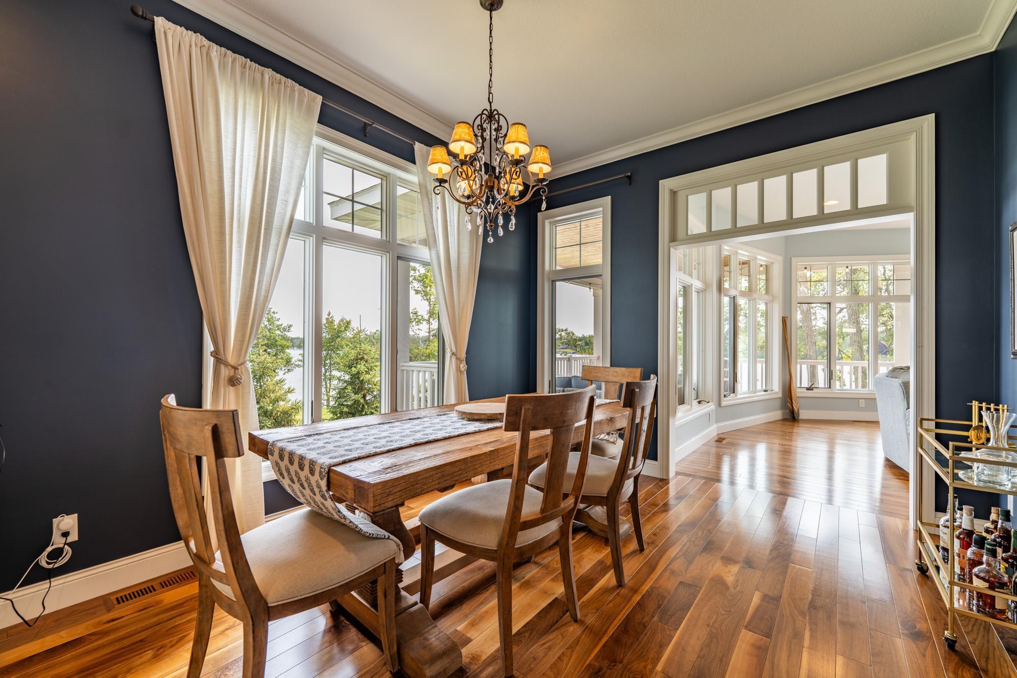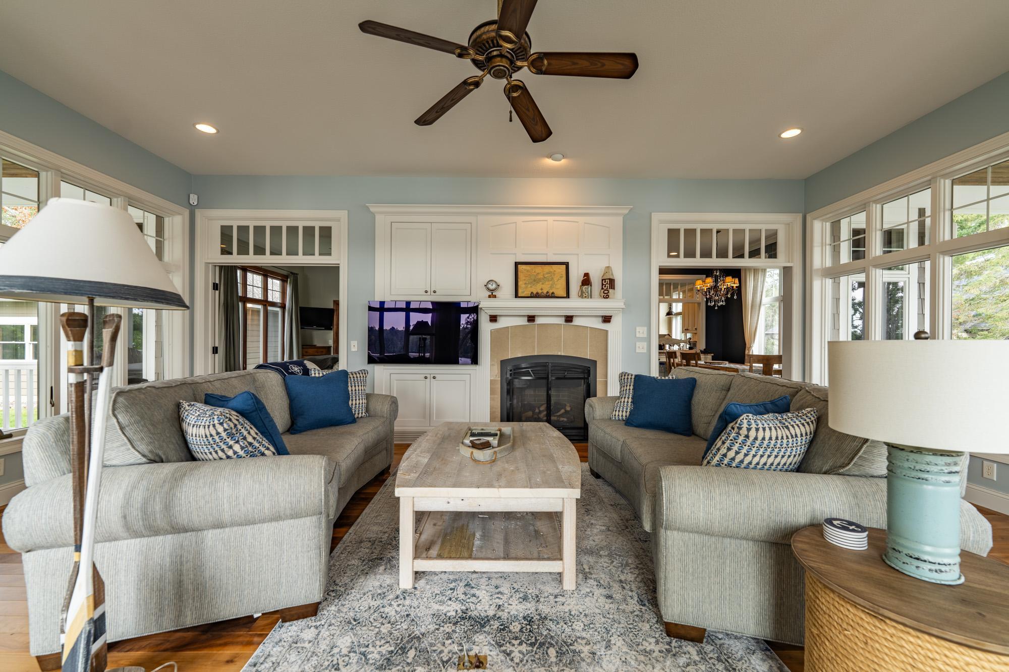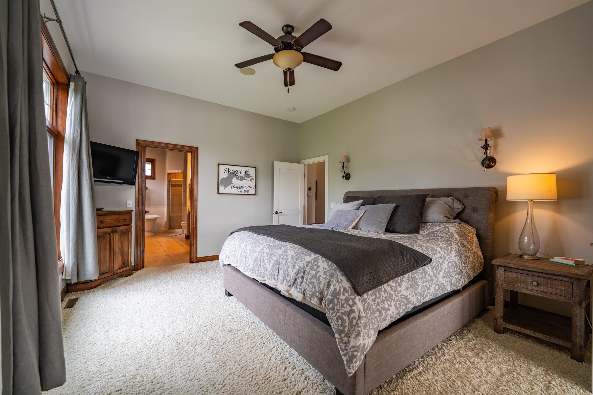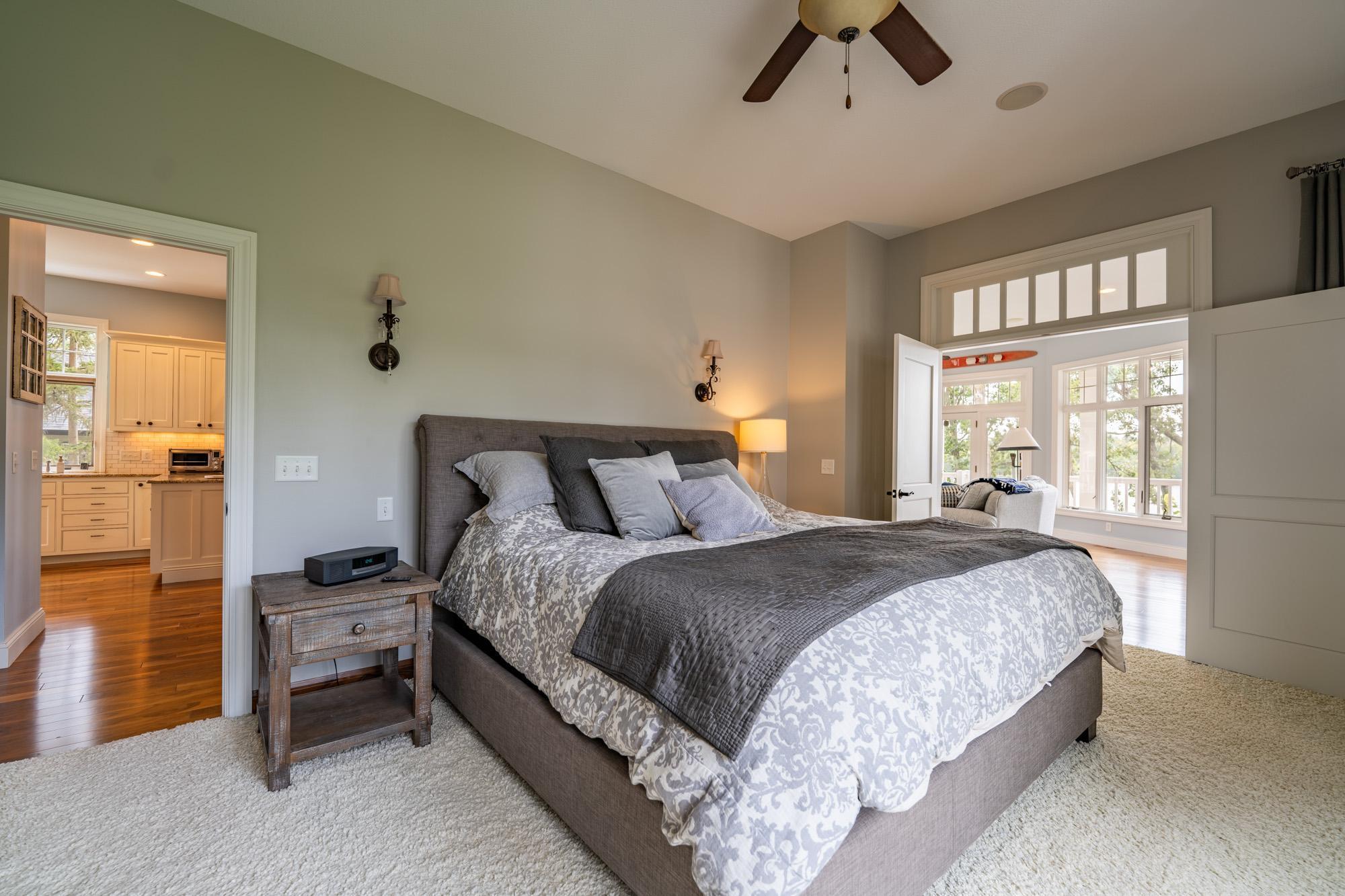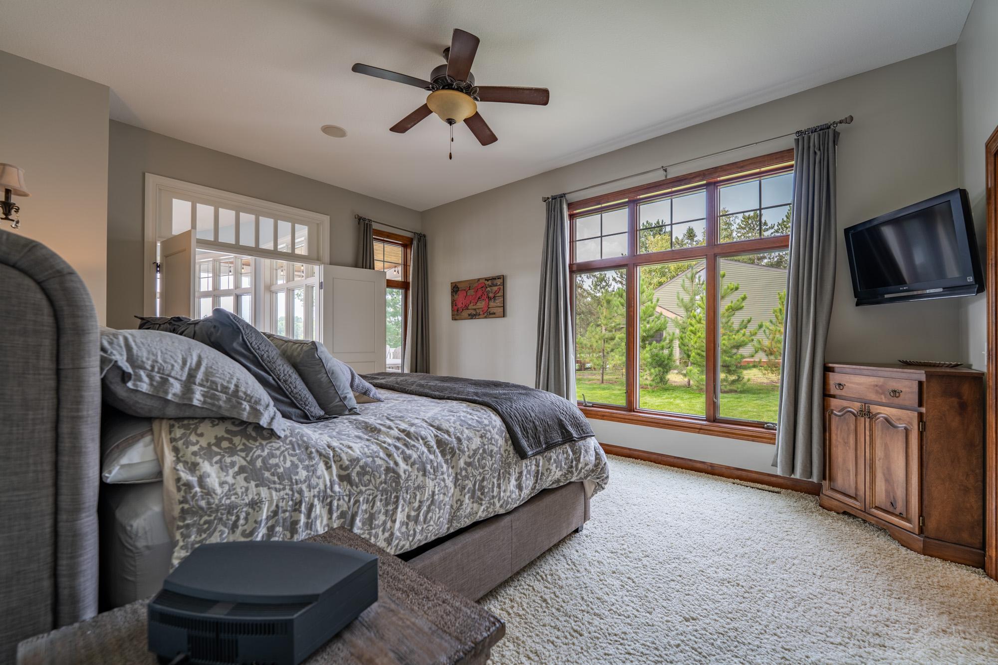 As the morning sun rises, casting a golden shimmer across the tranquil waters of Clamshell Lake, you can already feel the serenity this craftsman-style bungalow brings to lake living. Perched at the end of the renowned Ruttger Road, this 4-bedroom, 4-bath home offers a lifestyle of relaxation and connection with the lake. Enjoy 100 feet of sandy lake frontage, inviting you to indulge in the best of lakeside leisure. This well-appointed home features custom built-in cabinetry, plus Alder woodwork and black walnut hardwood floors throughout. The oversized kitchen is stunning, with granite countertops, cabinets with leaded glass doors, and top-of-the-line stainless steel appliances. The lakeside great room has a gas fireplace, French doors to the lakeside porch, and offers stunning lake views. The formal dining room is situated between the kitchen and great room, offering more scenic views. The main floor primary bedroom suite has a custom closet with storage above, a full bathroom with custom cabinetry, a Kohler vintage tub, a walk-in tiled shower, a stacked washer/dryer, and a heated tile floor. The upper level features a bedroom ensuite with a sunroom. The finished lower level includes Wirsbo in-floor heat, a family room with a floor-to-ceiling stone fireplace, two bedrooms, a bathroom, and a maintenance/exercise room with the laundry area. The property also includes a spacious detached, insulated, and heated 2-stall car garage for storage flexibility, as well as a maintenance-free exterior with James Hardy siding, aluminum soffits, and maintenance-free decking and rails, allowing more time to relish the lake life offered by the Whitefish Chain. Relax on the lakeside wrap-around porches and take in the warm summer breeze and stunning lake views. Engage in boating, fishing, swimming, and a multitude of lakefront activities available on the Whitefish Chain. Situated in Ideal Township, the home affords proximity to Crosslake and Pequot Lakes, offering great restaurants, shops, and premier golf courses. Experience the dream retreat you've been longing for on the famous Whitefish Chain!