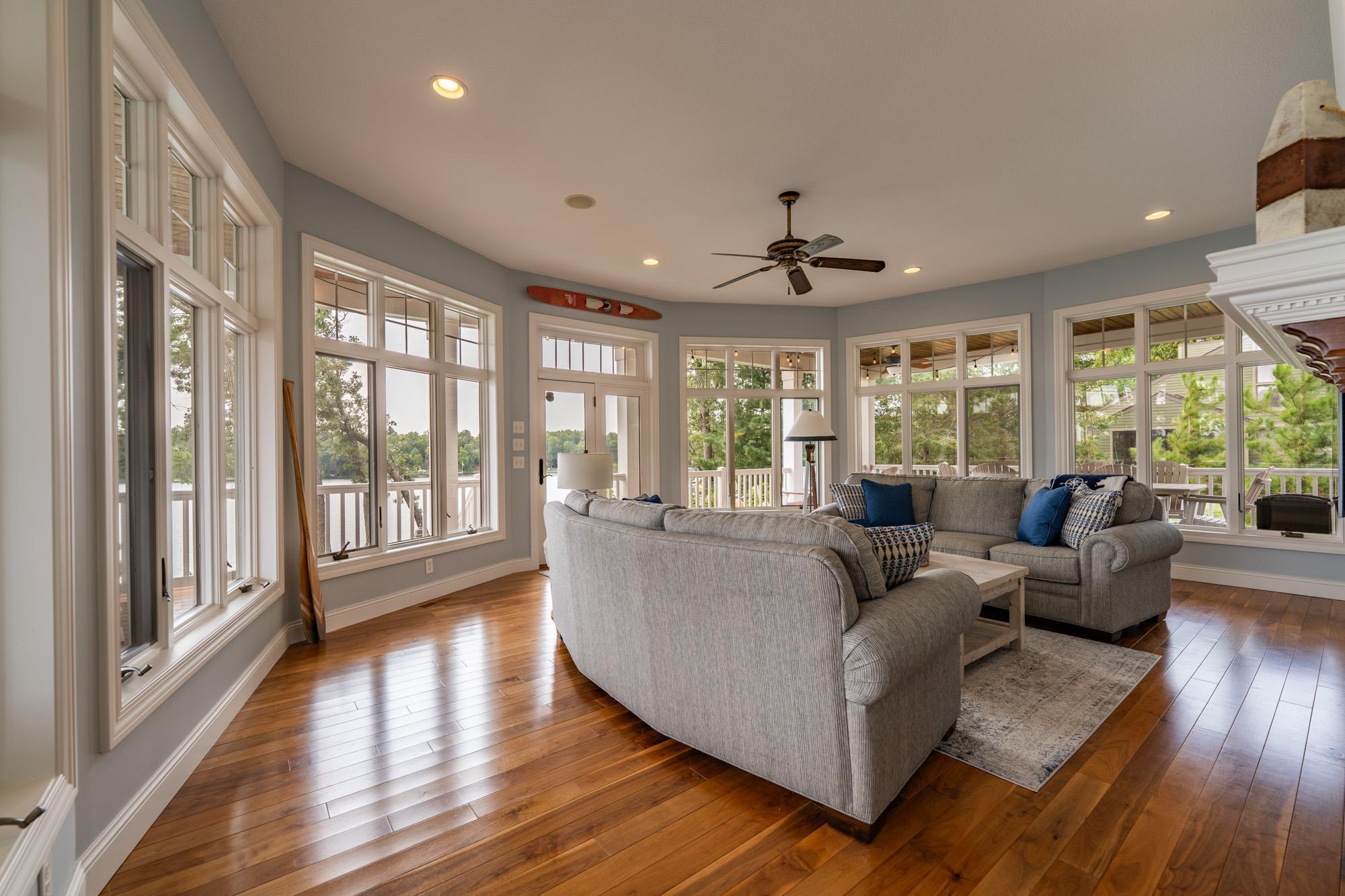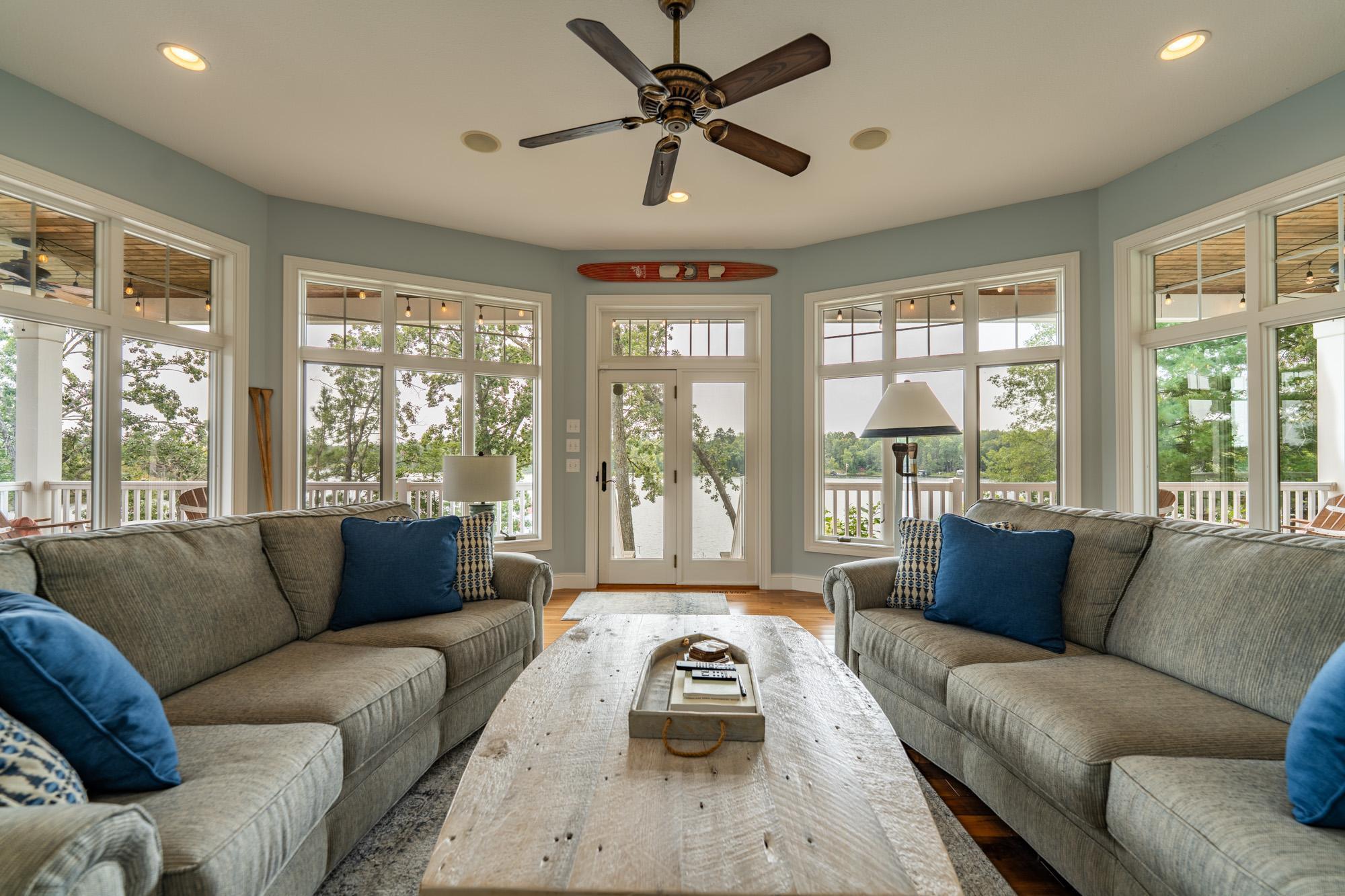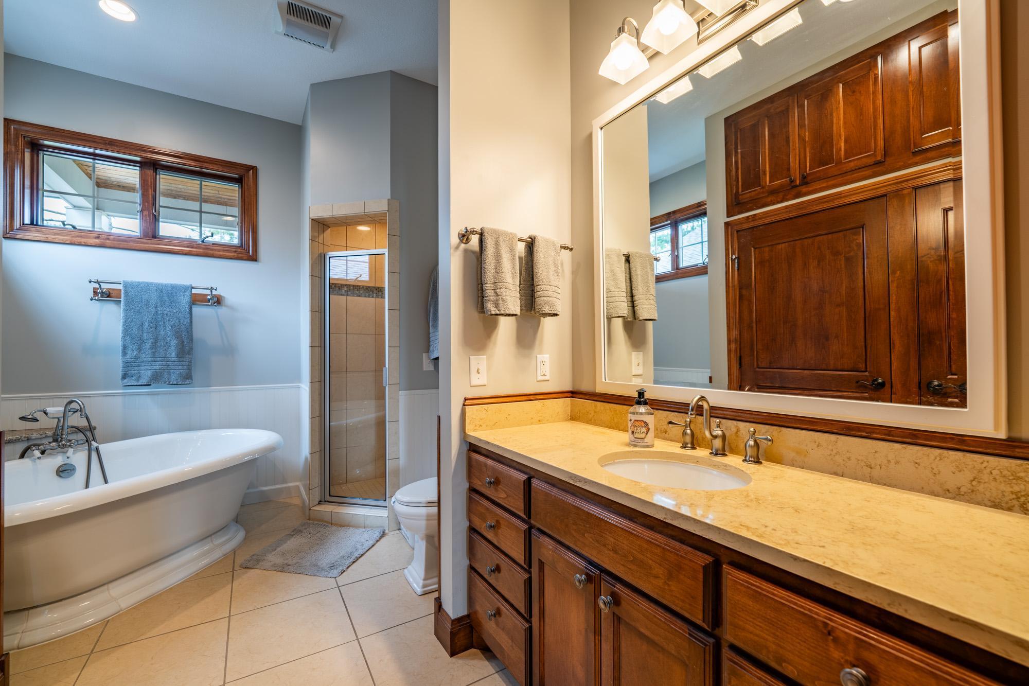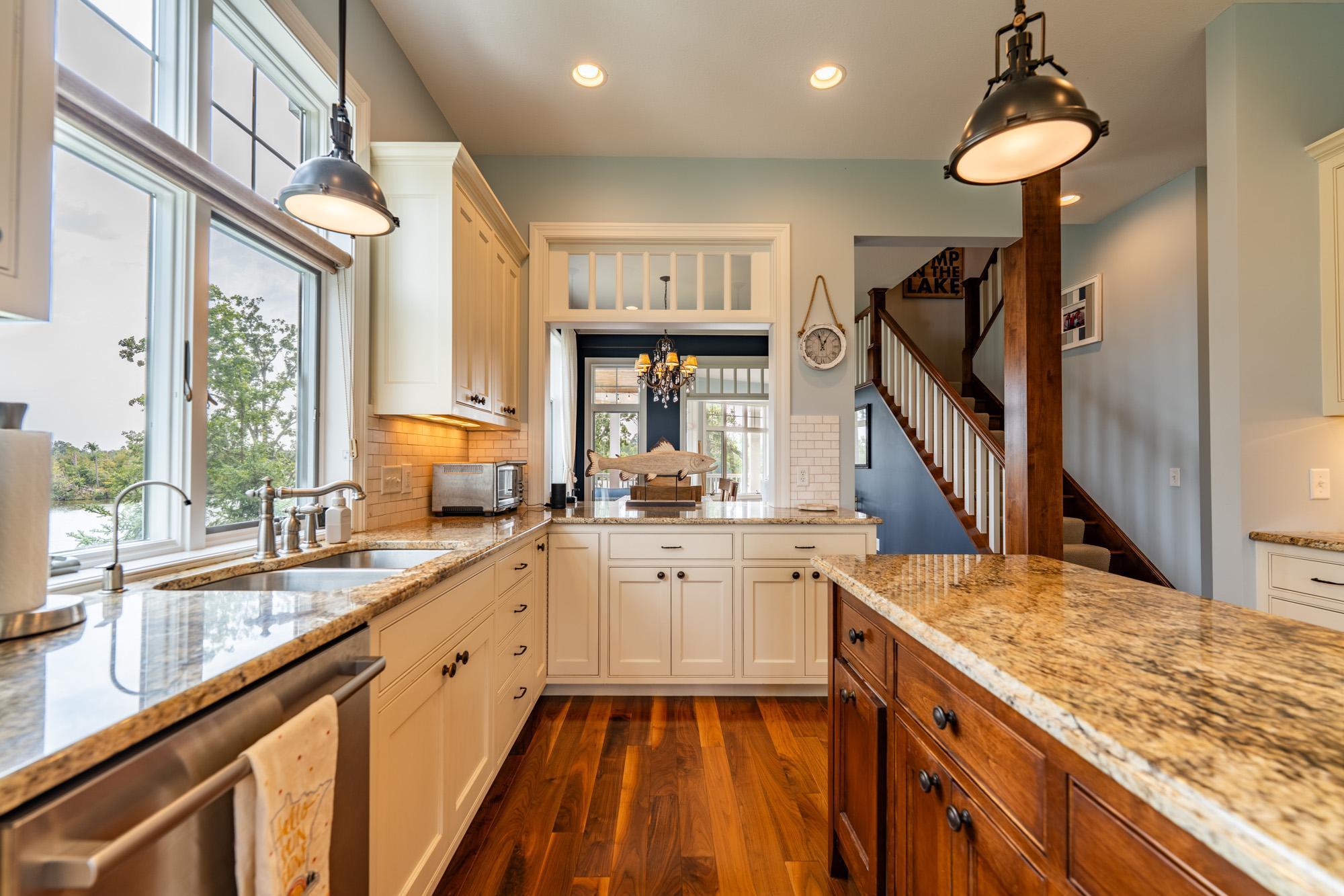 As the morning sun rises, casting a golden shimmer across the tranquil waters of Clamshell Lake, you can already feel the serenity this craftsman-style bungalow brings to lake living. Perched at the end of the renowned Ruttger Road, this 4-bedroom, 4-bath home offers a lifestyle of relaxation and connection with the lake. Enjoy 100 feet of sandy lake frontage, inviting you to indulge in the best of lakeside leisure. This well-appointed home features custom built-in cabinetry, plus Alder woodwork and black walnut hardwood floors throughout. The oversized kitchen is stunning, with granite countertops, cabinets with leaded glass doors, and top-of-the-line stainless steel appliances. The lakeside great room has a gas fireplace, French doors to the lakeside porch, and offers stunning lake views. The formal dining room is situated between the kitchen and great room, offering more scenic views. The main floor primary bedroom suite has a custom closet with storage above, a full bathroom with custom cabinetry, a Kohler vintage tub, a walk-in tiled shower, a stacked washer/dryer, and a heated tile floor. The upper level features a bedroom ensuite with a sunroom. The finished lower level includes Wirsbo in-floor heat, a family room with a floor-to-ceiling stone fireplace, two bedrooms, a bathroom, and a maintenance/exercise room with the laundry area. The property also includes a spacious detached, insulated, and heated 2-stall car garage for storage flexibility, as well as a maintenance-free exterior with James Hardy siding, aluminum soffits, and maintenance-free decking and rails, allowing more time to relish the lake life offered by the Whitefish Chain. Relax on the lakeside wrap-around porches and take in the warm summer breeze and stunning lake views. Engage in boating, fishing, swimming, and a multitude of lakefront activities available on the Whitefish Chain. Situated in Ideal Township, the home affords proximity to Crosslake and Pequot Lakes, offering great restaurants, shops, and premier golf courses. Experience the dream retreat you've been longing for on the famous Whitefish Chain!